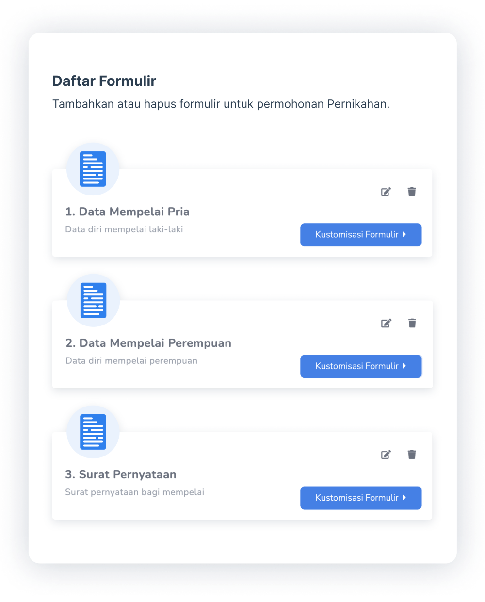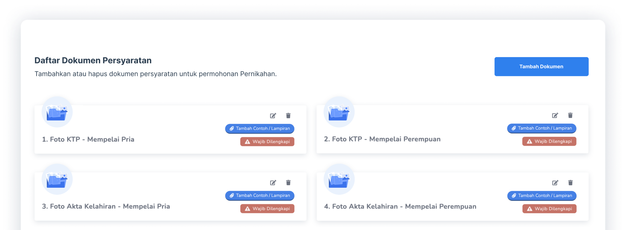 Tentukan dokumen persyaratan yang harus diunggah oleh jemaat untuk setiap layanan yang ingin didapatkan. Gereja juga dapat menetapkan dokumen mana saja yang wajib diunggah.