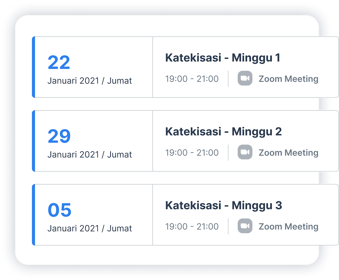Tinggalkan paper work dan ajak jemaat untuk melengkapi semua data diri secara self-service. Semua data tersimpan dengan baik, aman, dan dapat diakses sewaktu-sewaktu sesuai kebutuhan gereja.